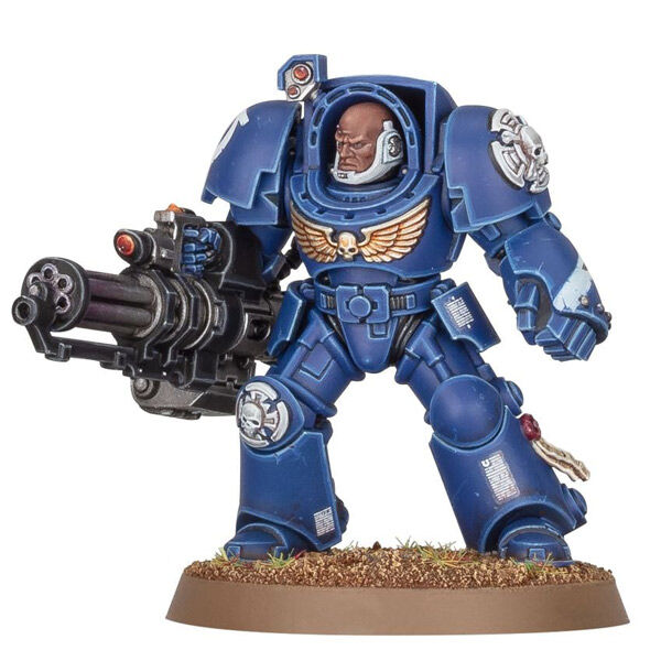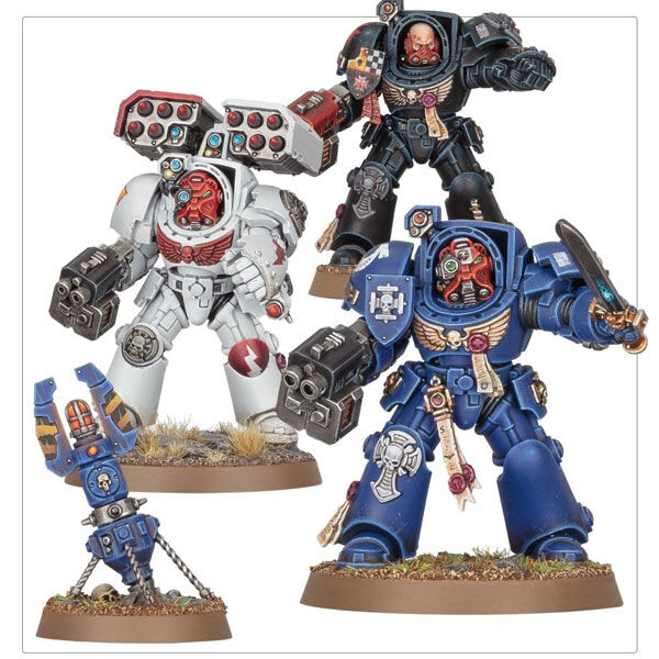 Terminator Squads go to battle clad in Tactical Dreadnought armour – a marvel of technology that enables its wearer to survive almost anything, from the stresses of teleportation to earth shaking artillery bombardments. These elite Space Marines stride inexorably across the field or simply appear in a crackle of teleportation energy, shrugging off enemy attacks as they unleash a steady barrage of return fire.