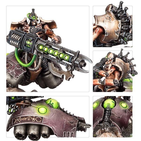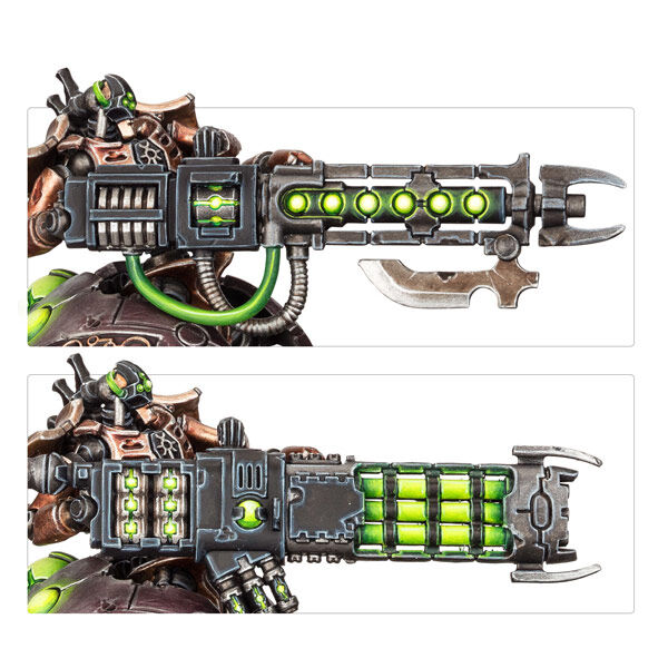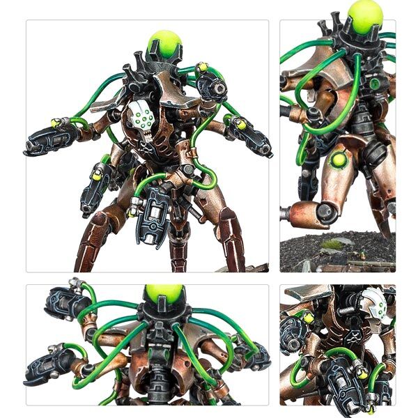 The Lokhust Heavy Destroyers can each be armed with either an infantry shredding enmitic exterminator, or tank busting gauss destructor, and each has a choice of two different heads.
