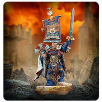 This multipart plastic kit builds Cato Sicarius, a legendary Ultramarines hero for your Space Marines armies in games of Warhammer 40,000. In battle, he is a melee powerhouse, and few foes can best him in a duel. This stunning miniature is dressed in finery and honour markings as befits his status. He holds aloft the legendary Talassarian Tempest Blade, carries his ornate helmet in his other hand, and is armed with an artisan plasma pistol to soften up tough foes before he closes in. The kit comes with a choice of two heads – one stoic, and the other shouting out a challenge – offering a degree of customisation for your mighty warrior.