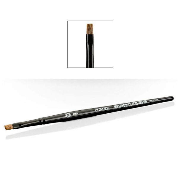 This small brush (S Dry) features a light ox hair and synthetic blend of bristles for stiffness and durability. The flat profile means a consistent coverage on raised areas - ideal for drybrushing!