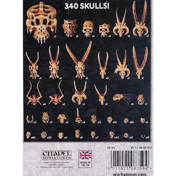 Enter the Citadel Skulls. This is a box of 340 (yes, three hundred and forty!) plastic skulls, designed for the hobbyist to decorate scenery, bases and models with as they see fit. There are even 20 extra jawbones!