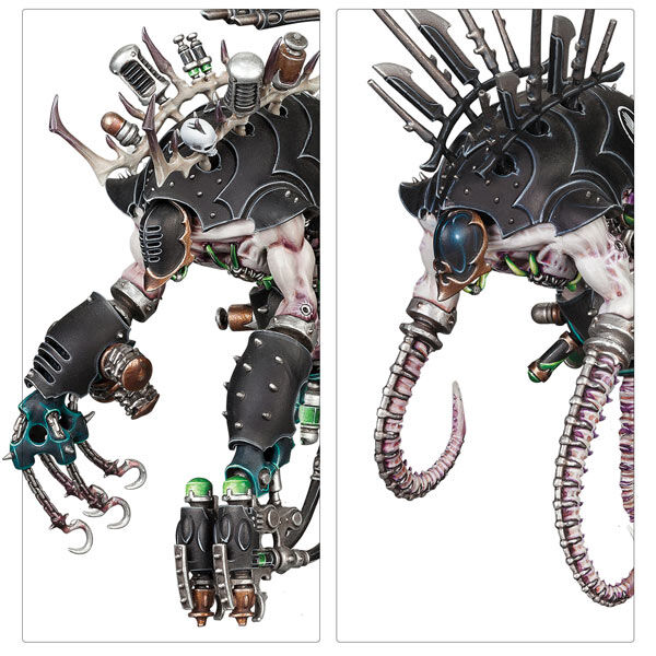 The Talos has a choice of four heads and can be armed with a stinger pod, twin haywire blaster, twin heat lance, or twin splinter cannon. One of its macro scalpels can be replaced with a twin liquifier gun, one set of chain flails, a Talos gauntlet, or a Talos ichor injector.
