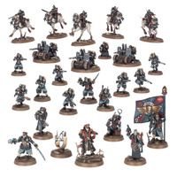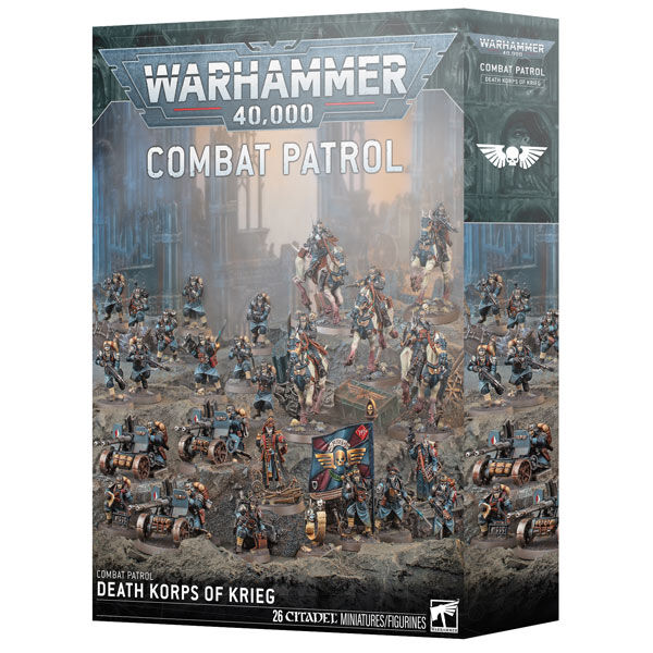 If you want to sacrifice yourself in the name of the God Emperor, this box is the perfect way to start a new Death Korps of Krieg collection – or expand an existing army – and save money compared to buying the kits individually. A Command Squad lead the charge, followed by a dependable infantry squad. Heavy weapons provide covering firepower while Death Riders outflank the enemy, ready to strike with their vicious sabres. These 26 plastic miniatures represent a complete Astra Militarum force for use in tight, tactical Combat Patrol games of Warhammer 40,000.