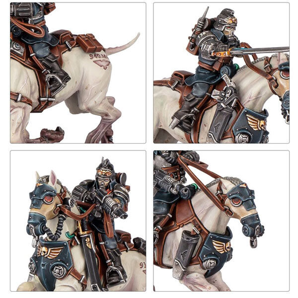 The miniatures in this kit are easy to customise. The Death Riders can each be armed with a power sabre, frag lance, or Death Rider lascarbine. There are parts to build an optional squad leader, as well as numerous cosmetic parts, including various designs of pouches.