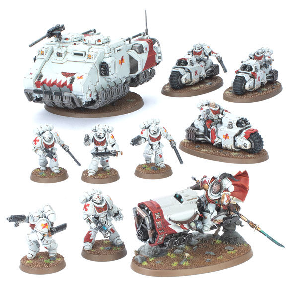 The White Scars favour lightning fast assaults, closing ranks with their enemies before they have a chance to prepare, and then rushing away to strike the next foe. They employ bikes in far larger numbers than most Chapters of Space Marines, and use rapid transports to bring in the infantry. Their reputation for speed and ferocity is well deserved.