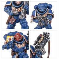 The miniatures in this box are easy to customise with the addition of the new Ultramarines Upgrade Frame, which features 69 components, including shoulder pads, heads, holsters, weapons, and more.