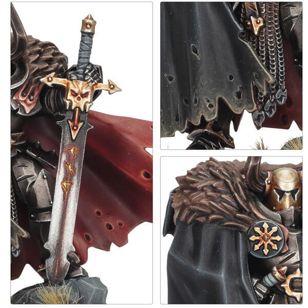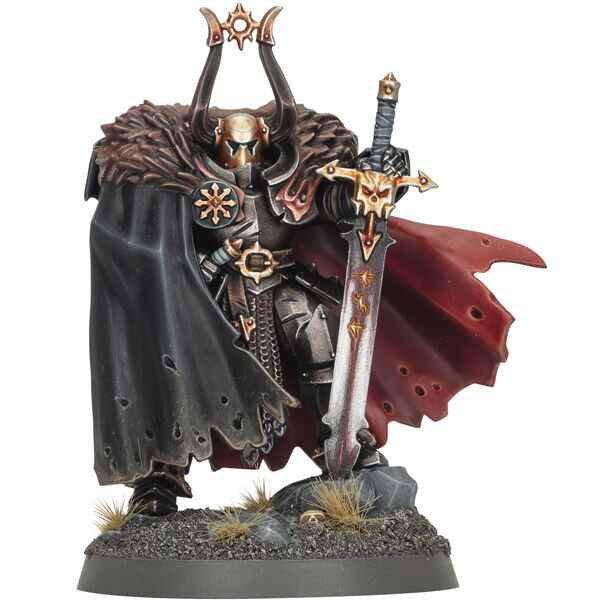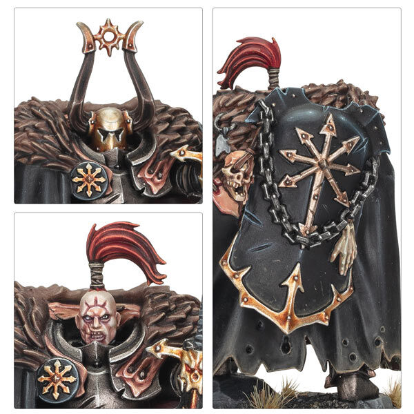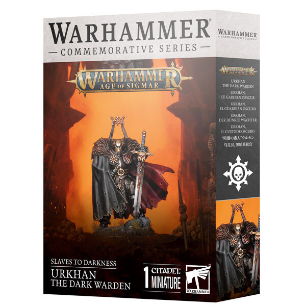 Celebrate Warhammer Day 2025 with Urkhan the Dark Warden, a brooding Chaos Warrior to lead your Slaves to Darkness armies in games of Warhammer Age of Sigmar. As an Exalted Hero of Chaos he excels in cutting down even the largest monsters or enemy leaders. Standing smugly with his cape billowing in the wind and his heavy sword planted firmly, he makes for a fantastic painting project. Urkan comes with a choice of two heads – one helmeted with long curving horns, and one bare with a tall top knot and a chaos star etched into his flesh.