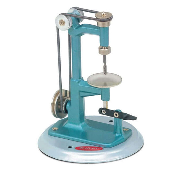 Finely varnished cast iron frame, adjustable drilling plate, steel twist drill.