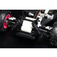 Despite the fact that this vintage race machine comes with the original body, wing, and under cowling to faithfully recreate the original buggy, it has been fully updated for today’s modern power system, while also maintaining much of the original vintage feel! Equipped with aluminum bulkheads, aluminum front and rear knuckles, FRP shock towers, FRP main chassis and hard anodized aluminum shocks, providing much needed durability and boosting performance! Get the legendary Super Dog Fighter and experience the modern performance in a retro style!