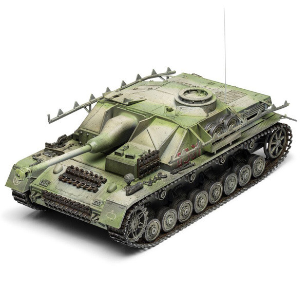 The Sd.Kfz.167 Sturmgeschutz IV was a development from an incredibly successful series of armoured mobile assault guns produced by the Germans during WWII, which were initially intended to provide fire support for infantry units coming across particularly stubborn areas of resistance during their advance, particularly those in fortified positions. The early short barrelled L/24 75 mm gun was later replaced with the longer L/43 and L/48 guns, which were devastatingly effective anti-tank weapons, which when combined with the low profile of these vehicles, made them a fearsome adversary for Allied tank commanders and could easily be concealed in ambush positions on the battlefield.